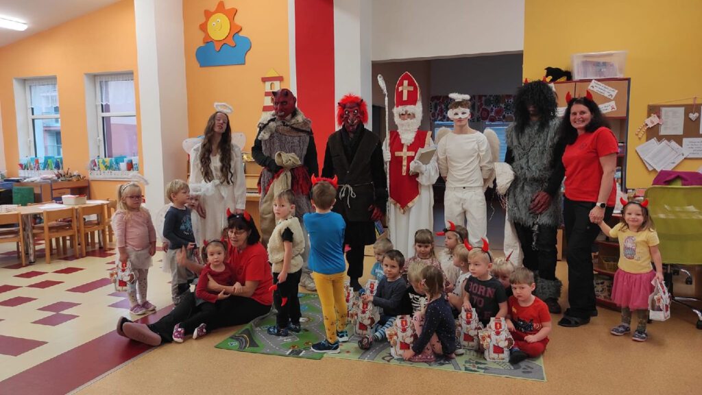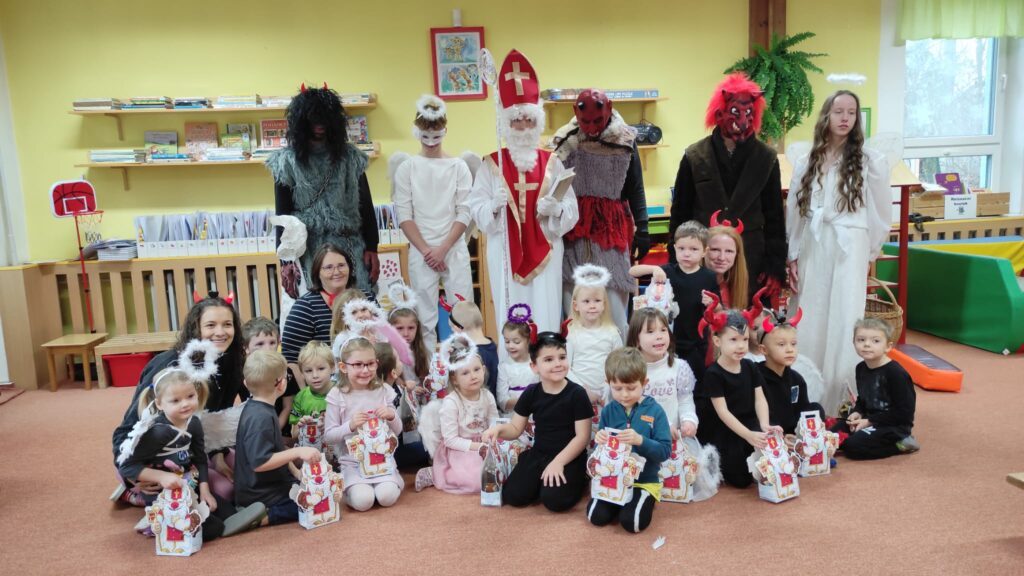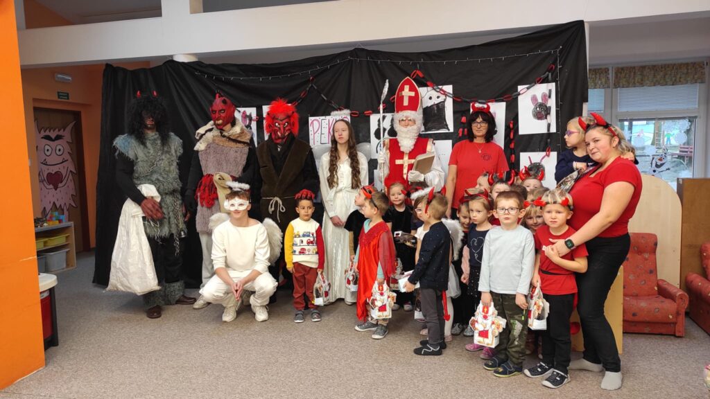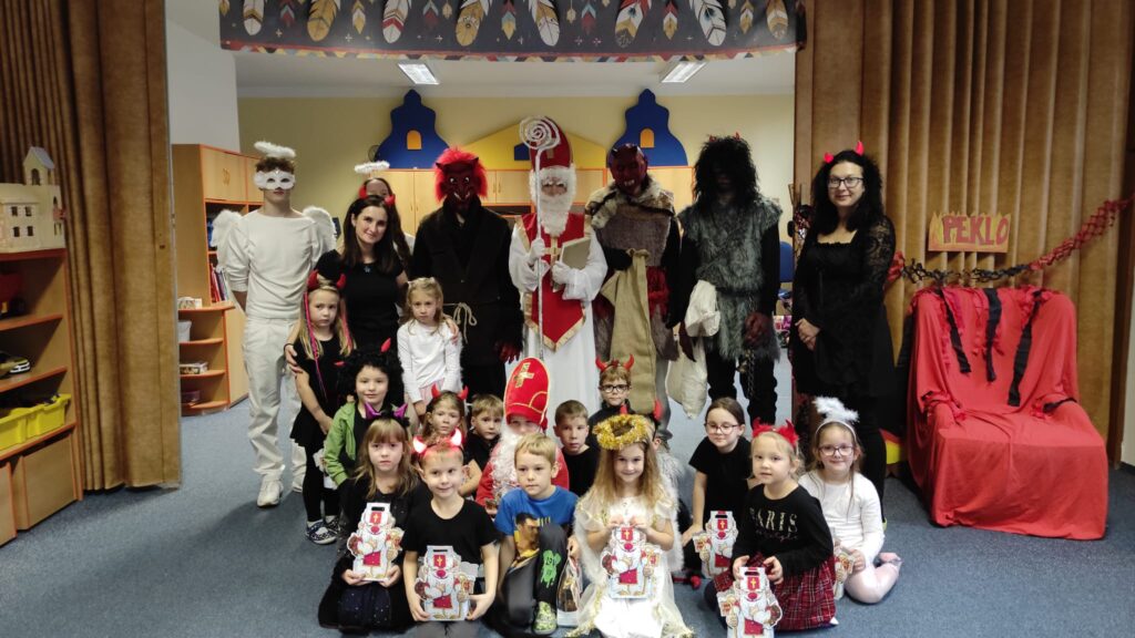 Do naší mateřské školy letos zavítala oblíbená mikulášská návštěva. Do tříd přišel Mikuláš spolu s anděly a čerty, kteří mezi děti přinesli pravou předvánoční atmosféru plnou očekávání a emocí. Děti Mikulášovi zazpívaly písničky, přednesly básničky a společně si povídaly o tom, co znamená být hodný a pomáhat ostatním. I když se někteří čerti snažili trochu postrašit, vše probíhalo v přátelském duchu a s úsměvem. Na závěr byly všechny děti odměněny krásnými mikulášskými balíčky, které jim udělaly velkou radost.