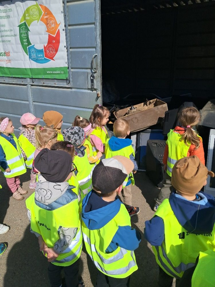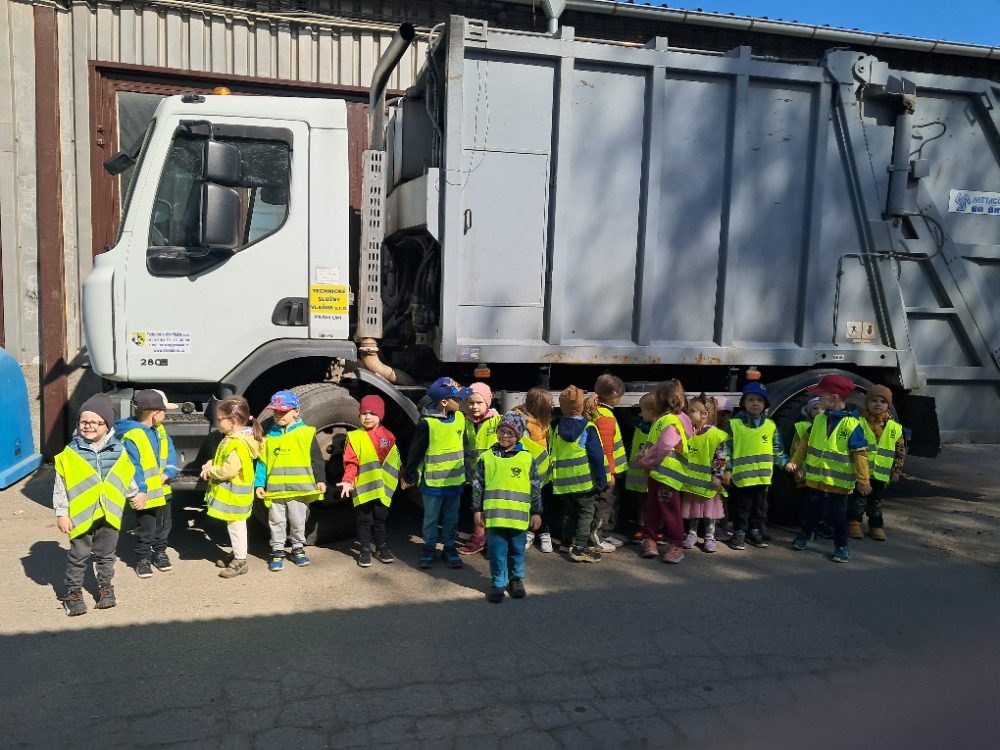 Tento týden si s dětmi povídáme o naší planetě Zemi. Její model si mohly prohlédnout na svítícím globusu. Rozeznaly vodní plochy i pevniny, dokonce s malou pomocí našly i naší malou republiku. Dozvěděly se, že je nutné naší modrou planetu chránit. Učily se třídit odpad a rozeznat barevné odpadní kontejnery. Proto jsme navštívily sběrný dvůr ve Vlašimi. Ale asi největší zážitek bylo prohlédnutí opravdového popelářského vozu!