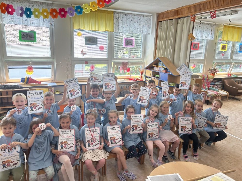 Děti jsme pasovaly na školáky ve třídě MŠ. Předávaly jsme triko, pamětní list a medaili. Následně probíhal program na zahradě MŠ. Rozdávání dárkových tašek, zpěv písně a slib. Na zahradě se objevil i kouzelník, který předvedl neuvěřitelné kousky. Poté už mohly děti na zahradě plnit různé aktivity. Za každou splněnou aktivitu dostaly děti školkové penízky. Na zahradě stál i obchůdek, kde se mohlo nakupovat.