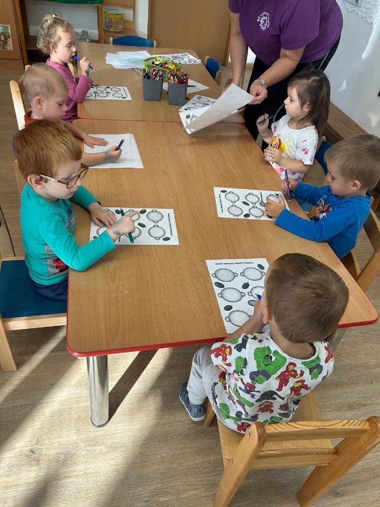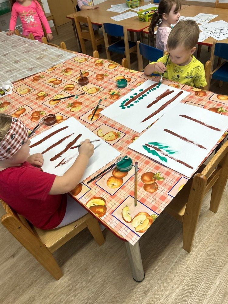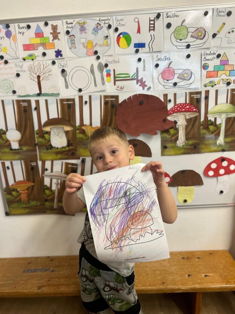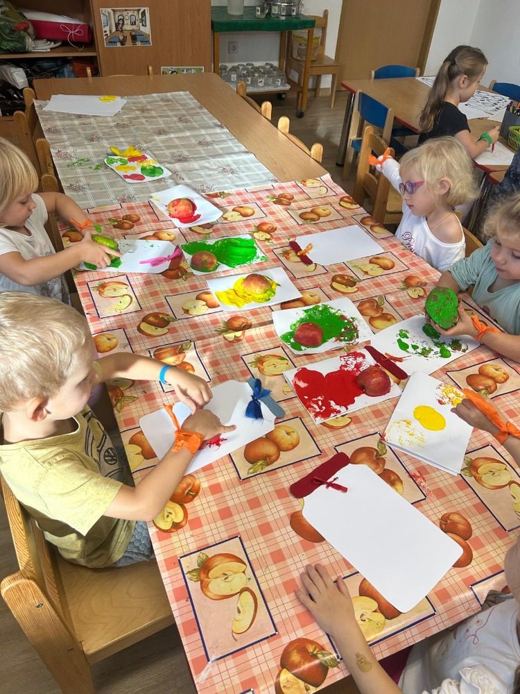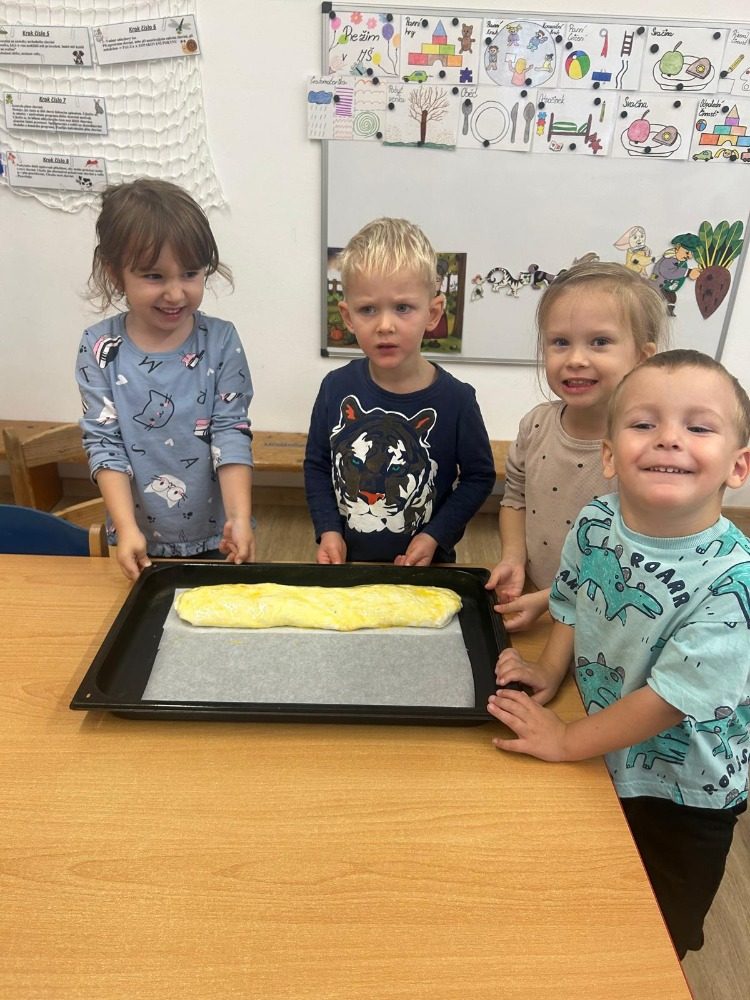 V tomto měsíci nás čekalo spoustu činností. Seznámili jsme se s tím, kde bydlíme a jak se jmenujeme. Následný týden jsme si povídali o tom, co je to ovoce. Vyrobili jsme si svůj ovocný kompot. Velkou radost však dětem udělalo pečení štrůdlů. Každý si zkusil nastrouhat jablko, sypat cukr a skořici a potřít štrůdl vejcem. Poté nás čekal podzim v parku a lese. Hodně jsme tvořili, ale nezapomněli jsme ani na písně a důležité informace. Také jsme u nás ve školce měli krásné divadlo. Celý tento měsíc byl zaměřený na podzimní aktivity.