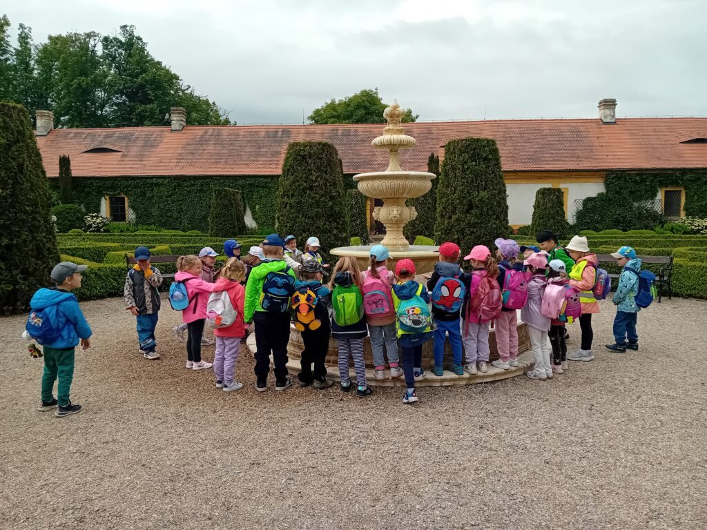 Natěšeni na výlet jsme ve středu 28. května po 8h vyrazili na nádraží. Cestou vlakem jsme pozorovali okolní krajinu a zahlédli i srnky běhající po polích. Naše první zastávka byla v Postupicích, kde jsme si dali svačinu. Posilněni svačinou jsme se vydali na cestu na Jemniště. Při příchodu na Jemniště jsme si prohlédli zvenku zámek a těšili jsme se na vstup do parku. Počasí nám zatím přálo. Po několika krocích v parku ale začalo pršet, což nás nepřekvapilo 😀 Vytáhli jsme pláštěnky a směle pokračovali v prohlídce parku. Viděli jsme tam klokany, emu, kozy, lamy, páva a pávice a nakonec jsme pohovořili s papouškem kakadu. Poté následovala další přestávka na občerstvení, které jsme si mohli dát v zámecké kavárně. Zde jsme se aspoň trochu ohřáli a osušili. Nakonec nám už nezbývalo než se se zámkem rozloučit a vyrazit na vlakové nádraží do Postupic. Zde jsme měli ještě dostatek času, a tak se mohlo pokračovat v hodování 😀 Déšť nám náladu nezkazil a věříme, že si děti z výletu odnesly spoustu zážitků.