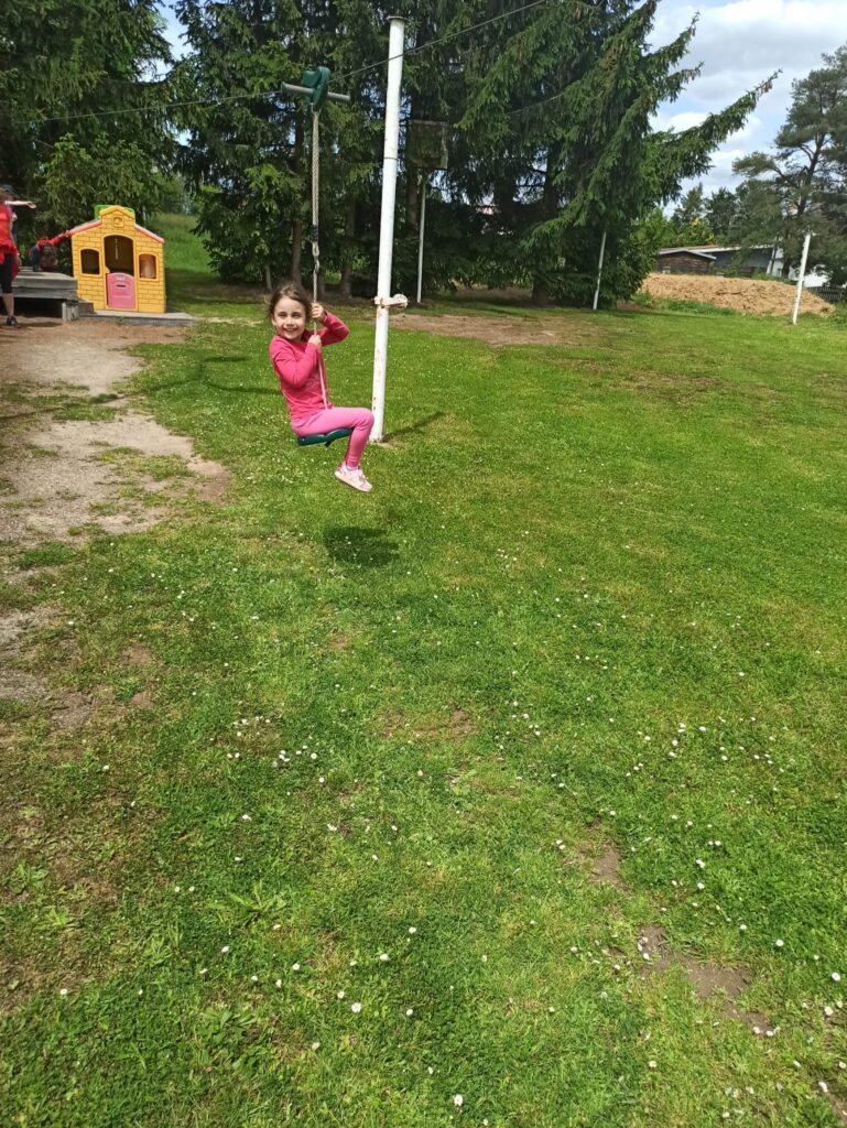 Cestou zpátky na nádraží jsme se zastavili v Lísku na dětském hřišti, kde si děti pohrály na písku, využily skluzavky, houpačky a hlavně lanovou dráhu, která se dětem moc líbila.