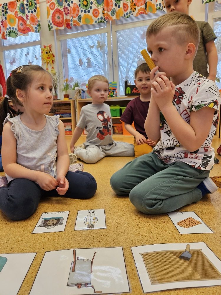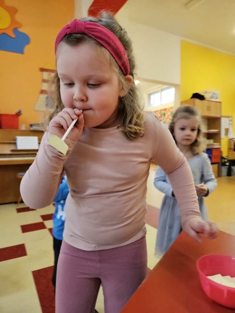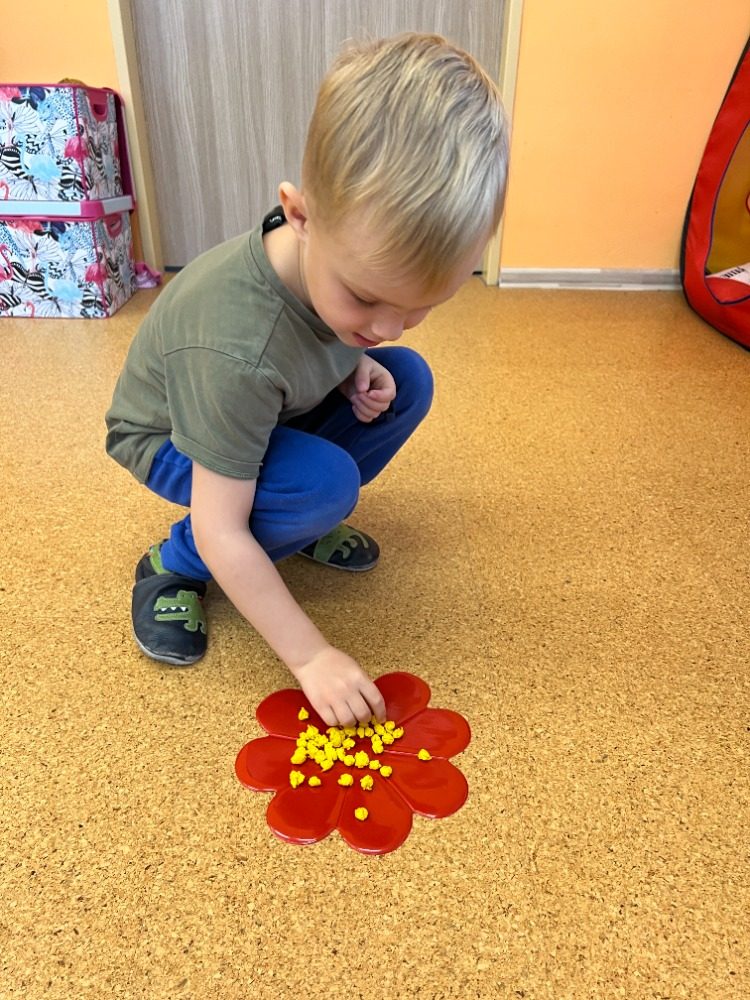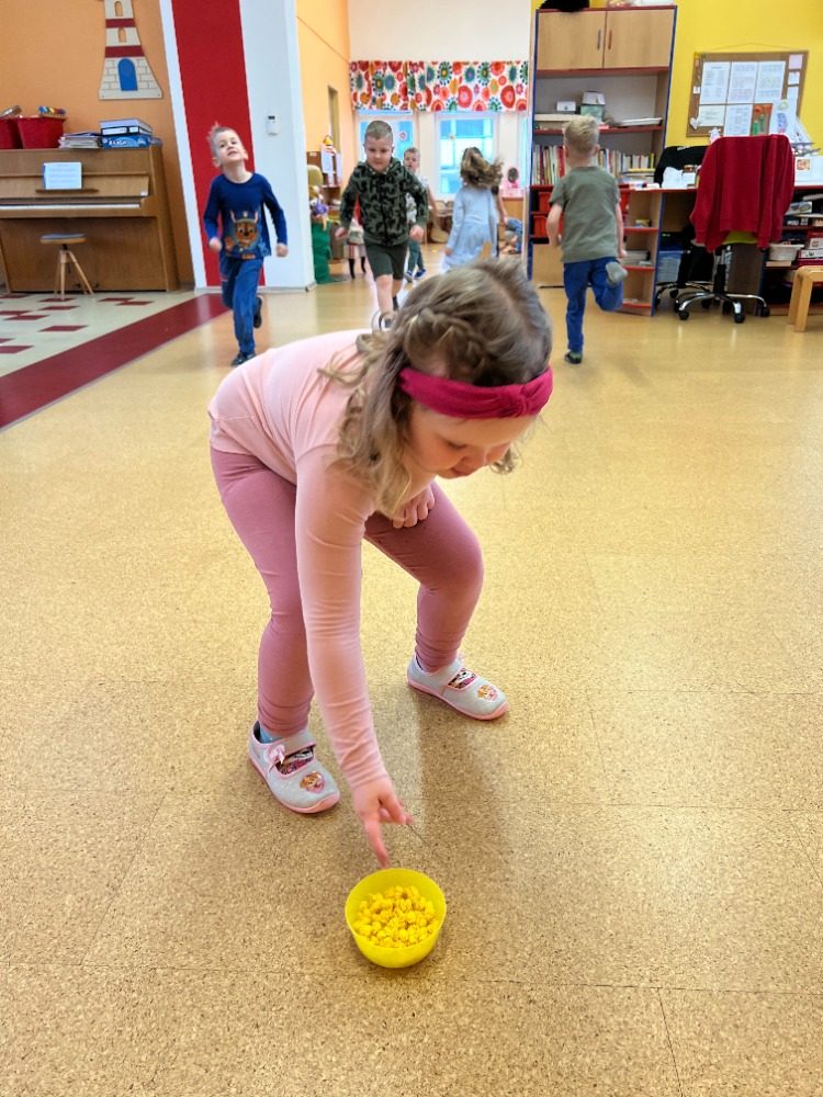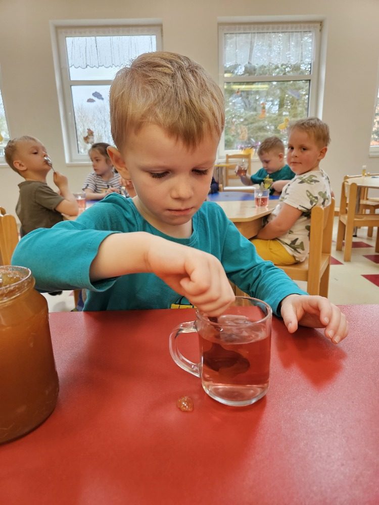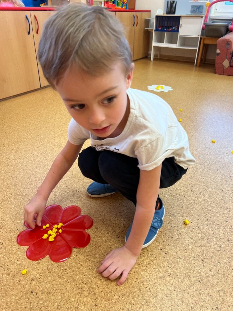 Děti z Červené třídy uzavřely měsíc březen tématem „Hmyz“. Mezi lidmi se říká „otravný hmyz“, ale ve skutečnosti jsou to velmi užitečná a obdivuhodná zvířata. Výuka byla zaměřena převážně na včely. Nejprve jsme se snažily dětem přiblížit život včely. Popsaly jsme, jak taková včela vypadá a jak se liší od vosy, sršně a čmeláka (vzhledově i chováním). Pak se z dětí staly včeličky a na vlastní kůži si vyzkoušely, jak náročnou práci vykonávají. Jedna skupina nosila „nektar“ po jedné kuličce do „úlu“ – včeličky se velmi nalétaly. Druhá skupina nasávala sosáčkem „nektar“ a přenášela do „úlu“. Pak jsme si vysvětlili krok po kroku, jak vzniká med (včetně reálných předmětů a obrazového materiálu) a nakonec ho děti měly možnost ochutnat. Nejprve se napily ovocného čaje neslazeného. Poté si každý nabral na lžičku med, ochutnal a osladil jím čaj. Věříme, že si děti o včeličkách zapamatovaly mnoho informací.